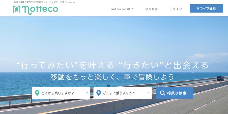 ドライバー自身の目的地と同じまたはその途中の区間を乗客と相乗りするシェアリングサービスです。Uberと同じライドシェアサービスですが、Uberがドライバーが自分の車に乗客を乗せ目的地まで輸送することで報酬を得るのに対し、nottecoは乗客を乗せることで報酬をえるのではなく、ガソリン代や高速代を乗客と負担(シェア)しあうサービスです。